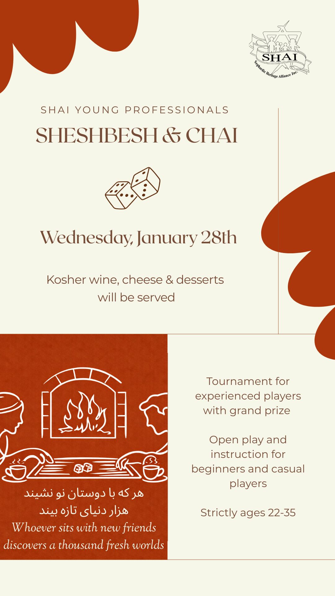 Join SHAI Young Professionals for an evening of wine and cheese, desserts, and great company!